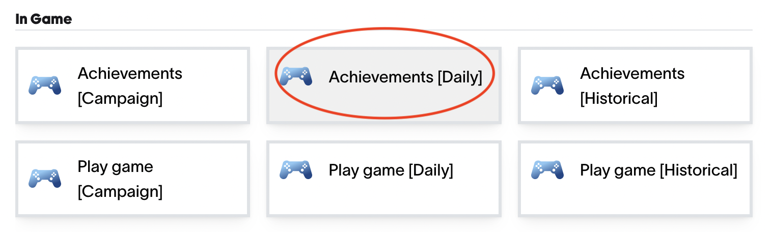For this example, we use the Player Achievements Ingestion API to send a daily login event as an achievement.